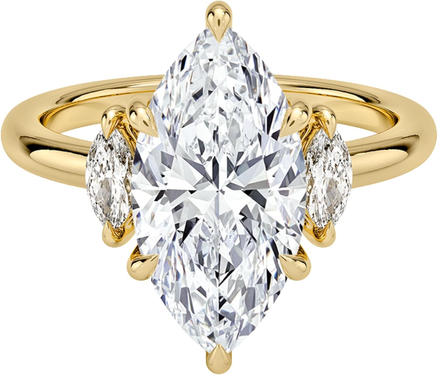 DiffNY Jewels Three-Stone Moissanite Engagement Ring Celebrate your love story with the timeless elegance of the DiffNY Jewels 0.50–5.00 CT Three Stone Moissanite Engagement Ring. Designed for brilliance and sophistication, this ring features a stunning Marquise -cut moissanite center stone complemented by marquise-cut side stones, creating a classic three-stone design that beautifully symbolizes your past, present, and future together. Brilliant Three-Stone Design: Features a sparkling 0.50–5.00 carat Marquise -cut moissanite center stone paired with two 0.30 carat marquise-cut side stones, offering a refined and meaningful design perfect for engagements. Premium Moissanite Sparkle: Expertly crafted moissanite stones deliver exceptional fire and brilliance, offering a diamond-like appearance with outstanding durability and shine. Luxury Metal Options: Available in 925 Sterling Silver or 10K, 14K, and 18K solid gold options, including Yellow Gold, White Gold, and Rose Gold finishes to suit every personal style. Perfect for Engagement & Gifting: A beautiful choice for proposals, anniversaries, weddings, or meaningful celebrations, making every moment unforgettable. Comfort & Everyday Wear: Designed with a smooth and durable band that ensures comfortable daily wear while securely holding stones in a timeless three-stone setting. Elegant, meaningful, and crafted for lasting beauty, this ring makes a perfect symbol of commitment and love, designed to be cherished for a lifetime.