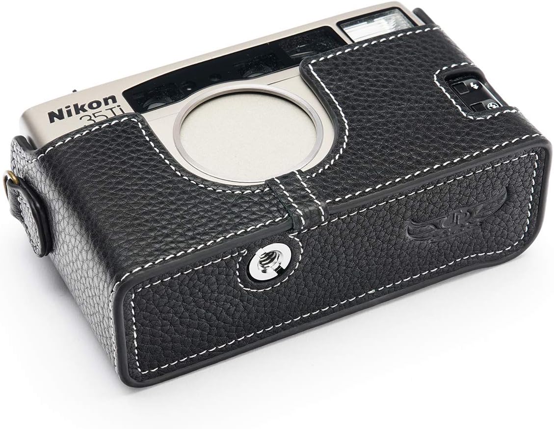 This camera is made by real top layer oil leather, the design is simple and vintage, use Metal sizing techniques make it very fit with the camera body. Inside lining use high lever velvet to protect camera body for scratch and coloration. Under base screw is made by copper and it can easy take off by coin. You don't need to take off the half case when you use tripod. It has a special design for Nikon 35Ti 28Ti Camera which makes it easy to turn over the Screen and it will totally not affect screen rotation. You don't need to take off the half case when you connect data lines. Content: 1 x camera half case, 1 x Free Genuine Real Leather Hand Strap, camera not included. Material:Genuine leather.