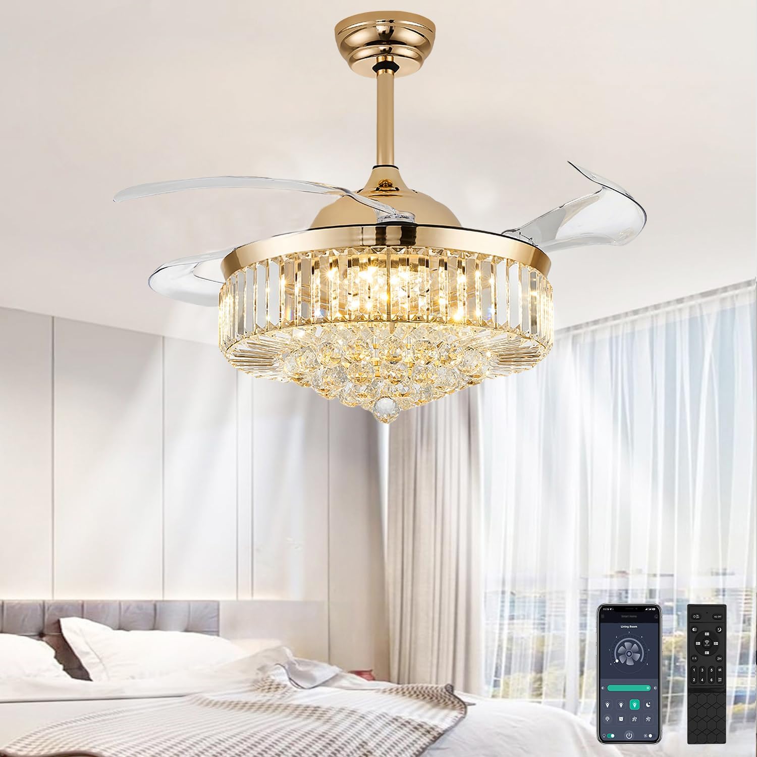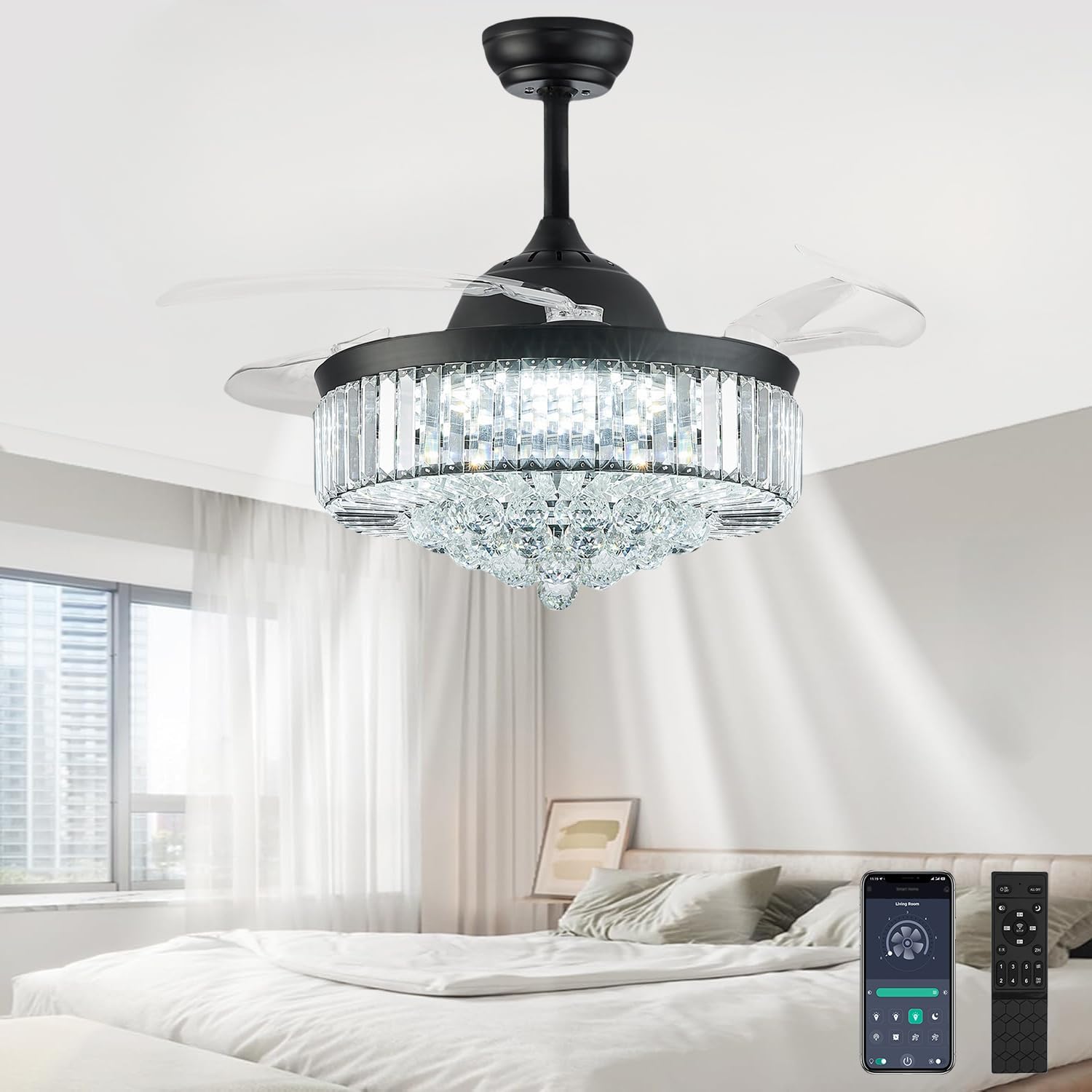 | Material | Metal body, Acrylic lampshade, PC blades, K9 Crystal balls |