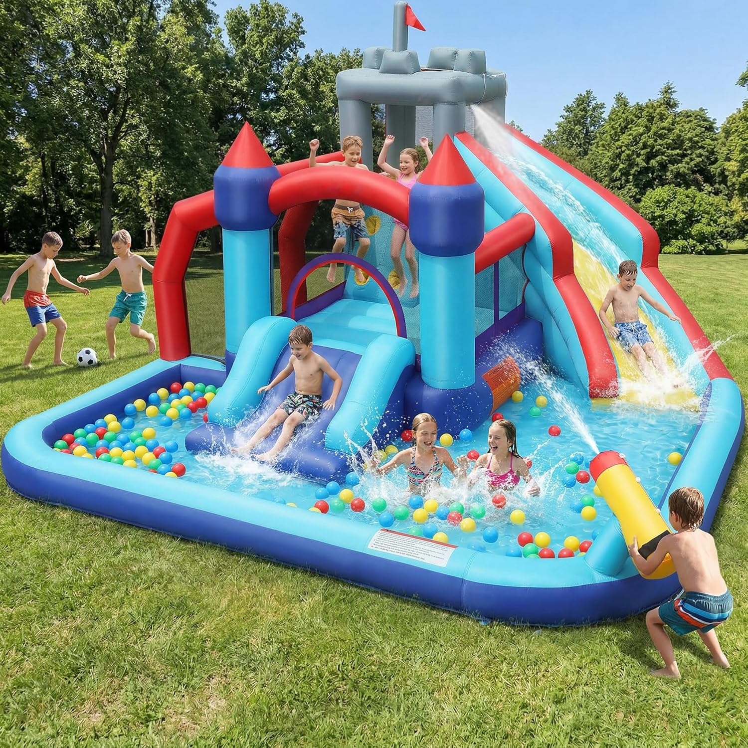 | Included Components | Blower *1 (including 4 blower stakes), Castle stakes *8, Rubber mallet *1, Basketball *1, Air pump *1, Ring toss *3, Target tray *1 + (target balls *6), Water gun *2, Repair kit *4, Water hose set *1, Storage bag *1, Instruction manual *1, Reminder card *1 |