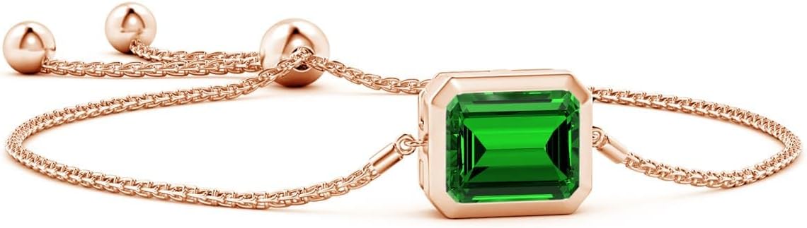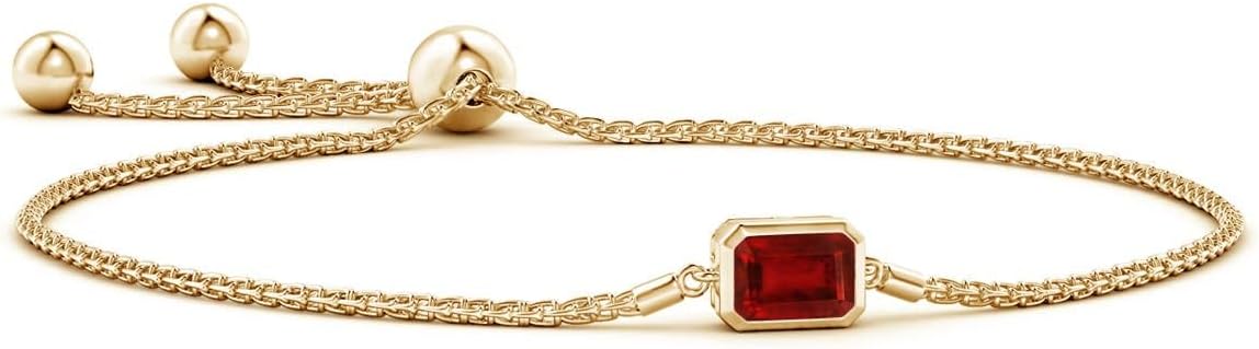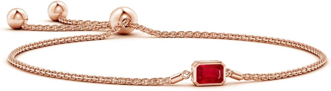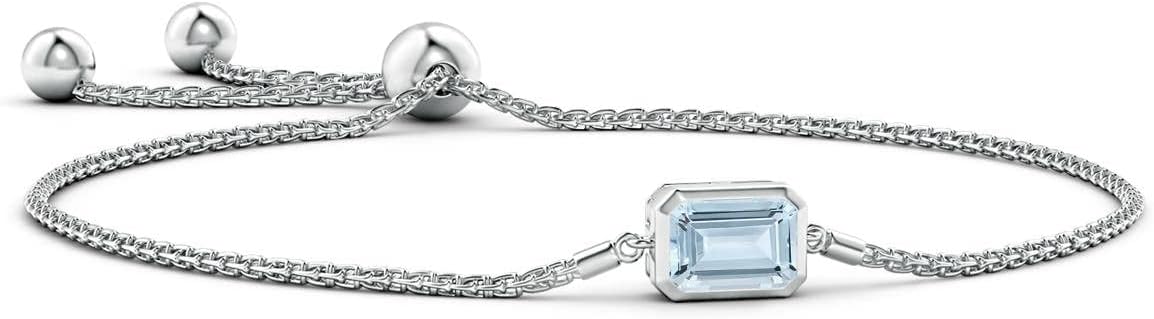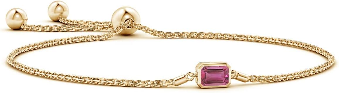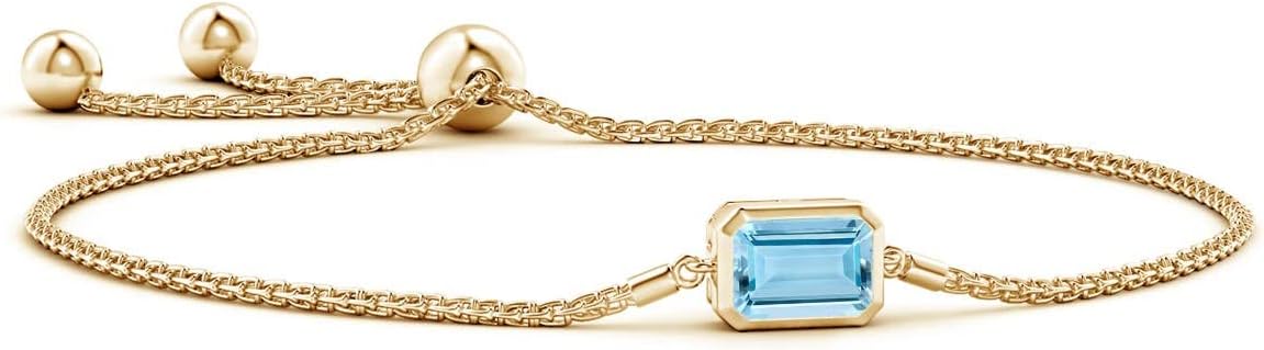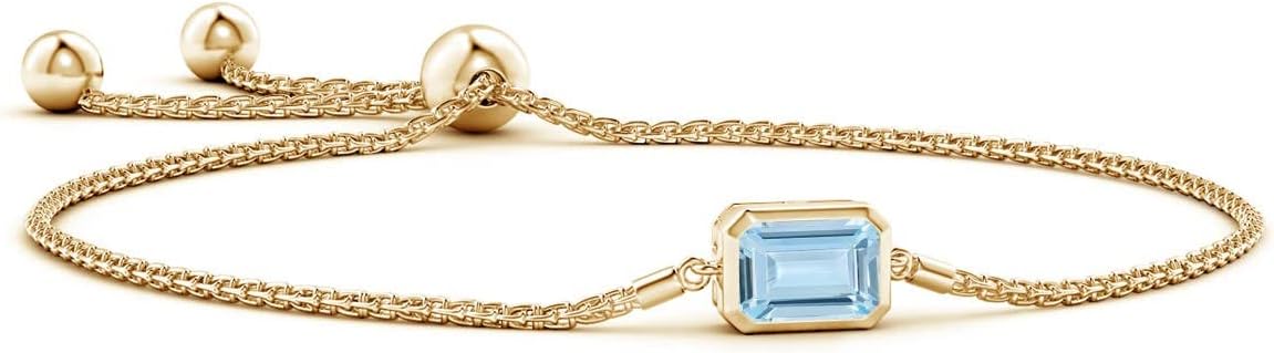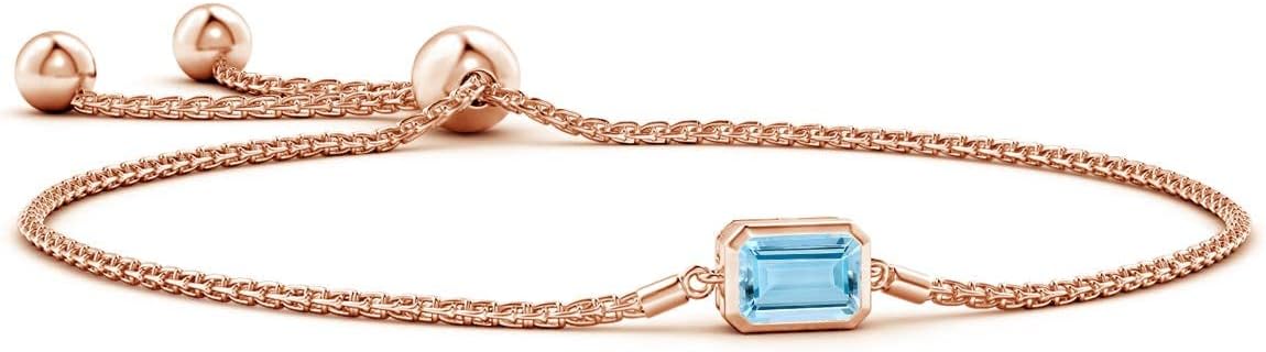 Adorned with a single emerald-cut Diamond,Emerald,Ruby,Sapphire,Aquamarine,Peridot and Pink Tourmaline , this bracelet looks simple and beautiful. The gemstone is horizontally held in a sophisticated bezel setting. This bolo bracelet, adjustable to fit most wrists, is crafted in 14k solid gold/Sterling Silver.