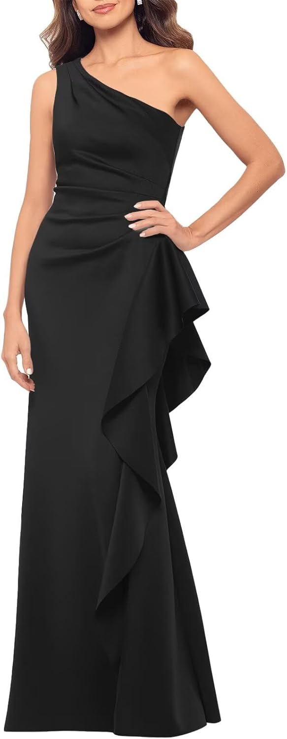 | Embellishment Feature | Elegant Wedding Guest Dress, Long Evening Party Dress, One Shoulder Prom Dress, Satin Formal Dress, Satin Ruffle Formal Dress |