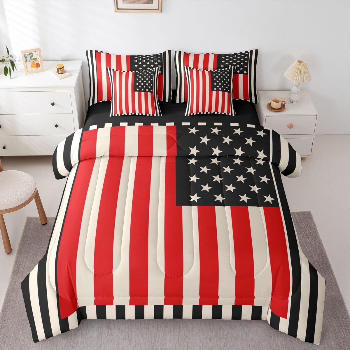Welcome to our store. Size Information Twin size:1 Comforter (68" x 90"), 1 Fitted Sheet (39" x 75" + 16"), 1 Flat Sheet (67" x 96"), 2 Pillowcases (20" x 30"), 2 Throw Pillow Covers (18" x 18"). Full size:1 Comforter (80" x 90"), 1 Fitted Sheet (55" x 75" + 16"), 1 Flat Sheet (81" x 96"), 2 Pillowcases (20" x 30"), 2 Throw Pillow Covers (18" x 18"). Queen size:1 Comforter (90" x 90"), 1 Fitted Sheet (60" x 80" + 16"), 1 Flat Sheet (102" x 90"), 2 Pillowcases (20" x 30"), 2 Throw Pillow Covers (18" x 18"). King size:1 Comforter (104" x 90"), 1 Fitted Sheet (78" x 80" + 16"), 1 Flat Sheet (106" x 90"), 2 Pillowcases (20" x 36"), 2 Throw Pillow Covers (18" x 18"). Versatility Our line of family bedding offers bold colors, trendy patterns, and the softest fabrics you’ll find anywhere. Our comforter, sheets and pillow cases are all easy to care for. You’ll find a wide variety of sizes and design options to make your kid happy, no matter what their style. Tuck your children in for a sweet night of slumber, with Kids Rule. Safe Material We make your life (and ours) a little bit easier with durable fabrics that maintain its softness and vibrant colors wash after wash. Washing Instructions Machine Wash Separately In Cold Water,Hang Dry,Do Not Bleach. Occasion The item is not only perfect for your home (bedroom, guest room, living room, etc) or RV, but also for holidays or anniversaries (Chiristmas, New Year, Easter, Father's Day, Mother's Day, Teachers' Day,Halloween, Thanksgiving day, birthday) for people who you love (your families, friends, relatives, boyfriend,girlfriend)."