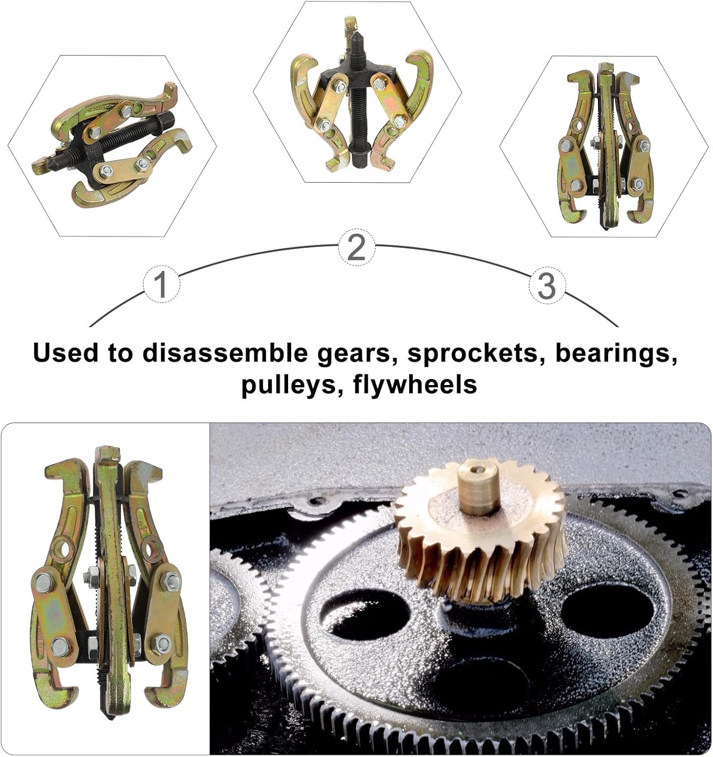 Package List 1 x puller Features - Size: About 23.50X18.00X1.20cm/9.24X7.07X0.47inch. -Product Info:Three-claw tuner - Material: Steel. - The design structure is simple and creative, suitable for disassemble gears, sprockets, bearings, pulleys, flywheels, etc three jaw bearing puller. - Mainly made of sturdy and durable steel, it is not easy to rust and damage small bearing puller. - With craftsmanship, which is labor-saving and convenient, and can help efficiency jaw puller tool. - Creative three-jaw bearing puller, with powerful griping function and load-bearing gear pulling tool. - High hardness, good toughness, not easy to damage, has bearing disassembly puller.Goods Descriptionthree jaw bearing puller It can help you quickly disassemble and provide convenience for your repair work.bearing removal tool Excellent craftsmanship and simple design, easy to use, labor-saving, and bring you a .bearing puller tool This is a three-jaw bearing puller made of premium steel material, sturdy and practical for long time use