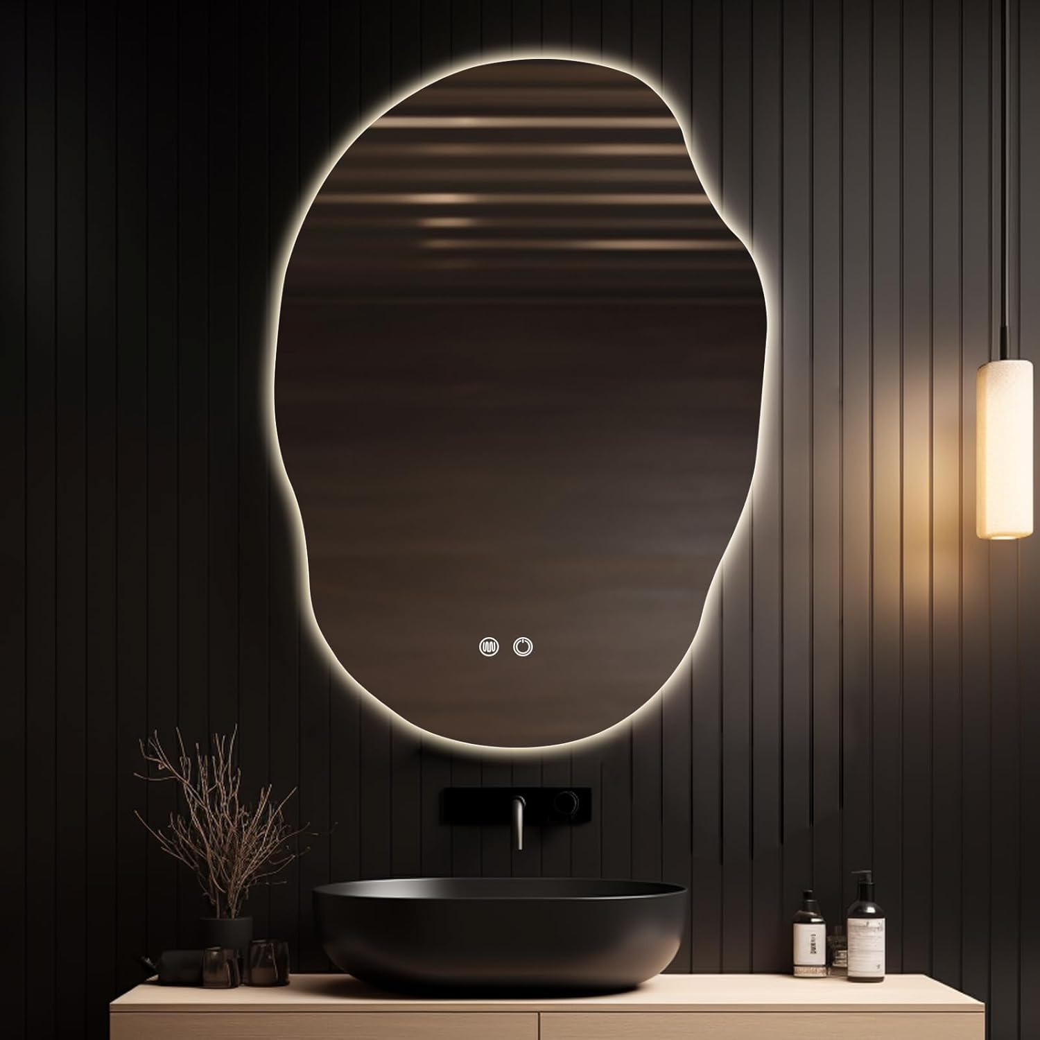HOMECOOKIN LED Bathroom Mirror with Lights, 22 x 24 Inch Backlit LED Bathroom Mirror, Anti Fog Mirror for Bathroom, 3 Colors and Dimmable Light, Horizontal/Vertical