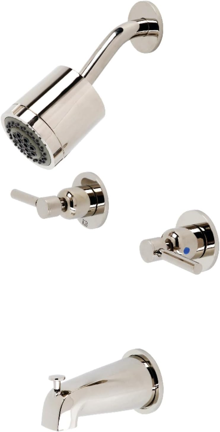 Dive into modern design with the sleek and cylindrical styling of this tub and shower faucet. Complete with easy-to-turn lever handles, an optimum bathing experience awaits. Enjoy the sturdy brass construction and premium polished brass finish for a fixture that will last for years to come. Internal valve hardware is included for your use.
