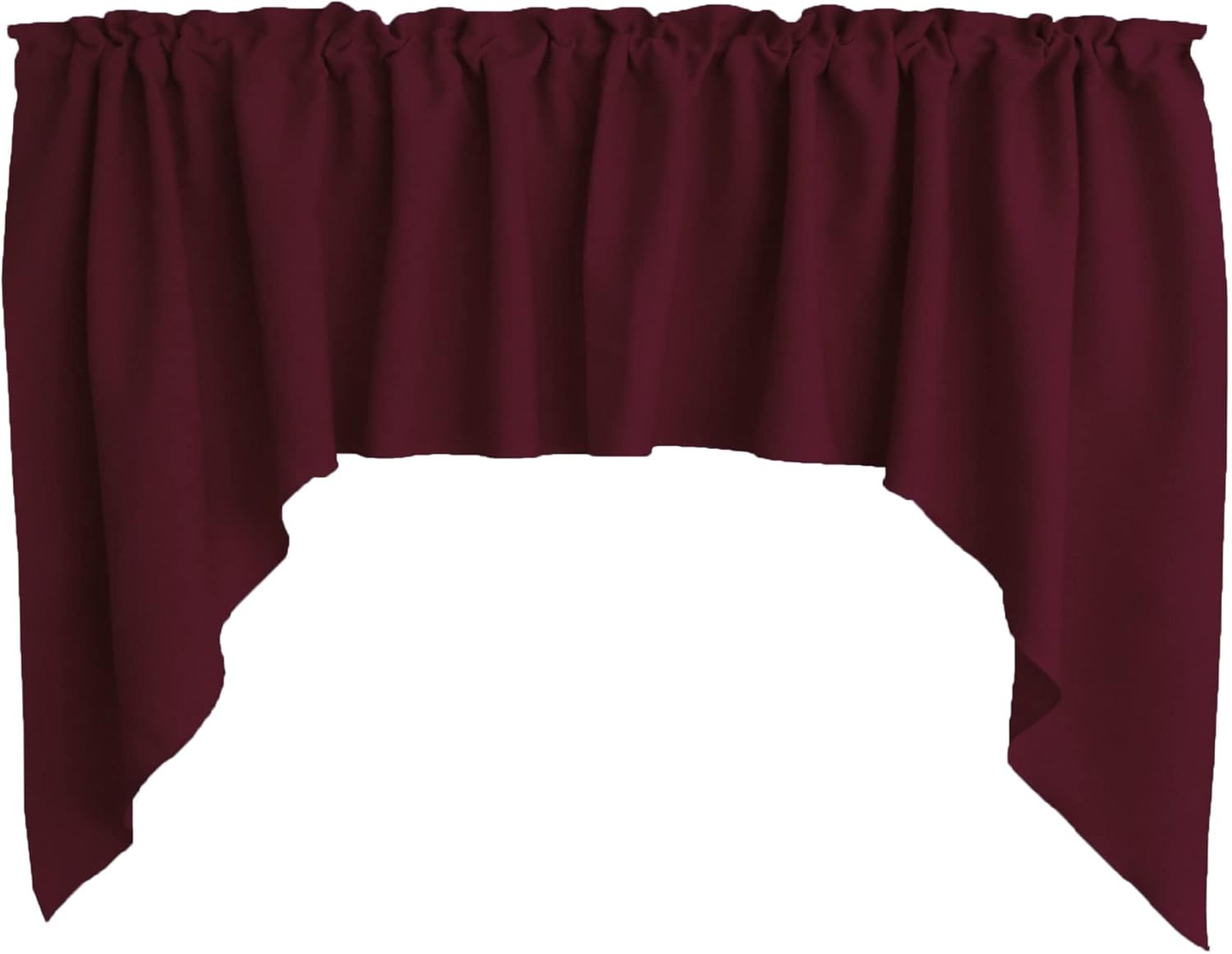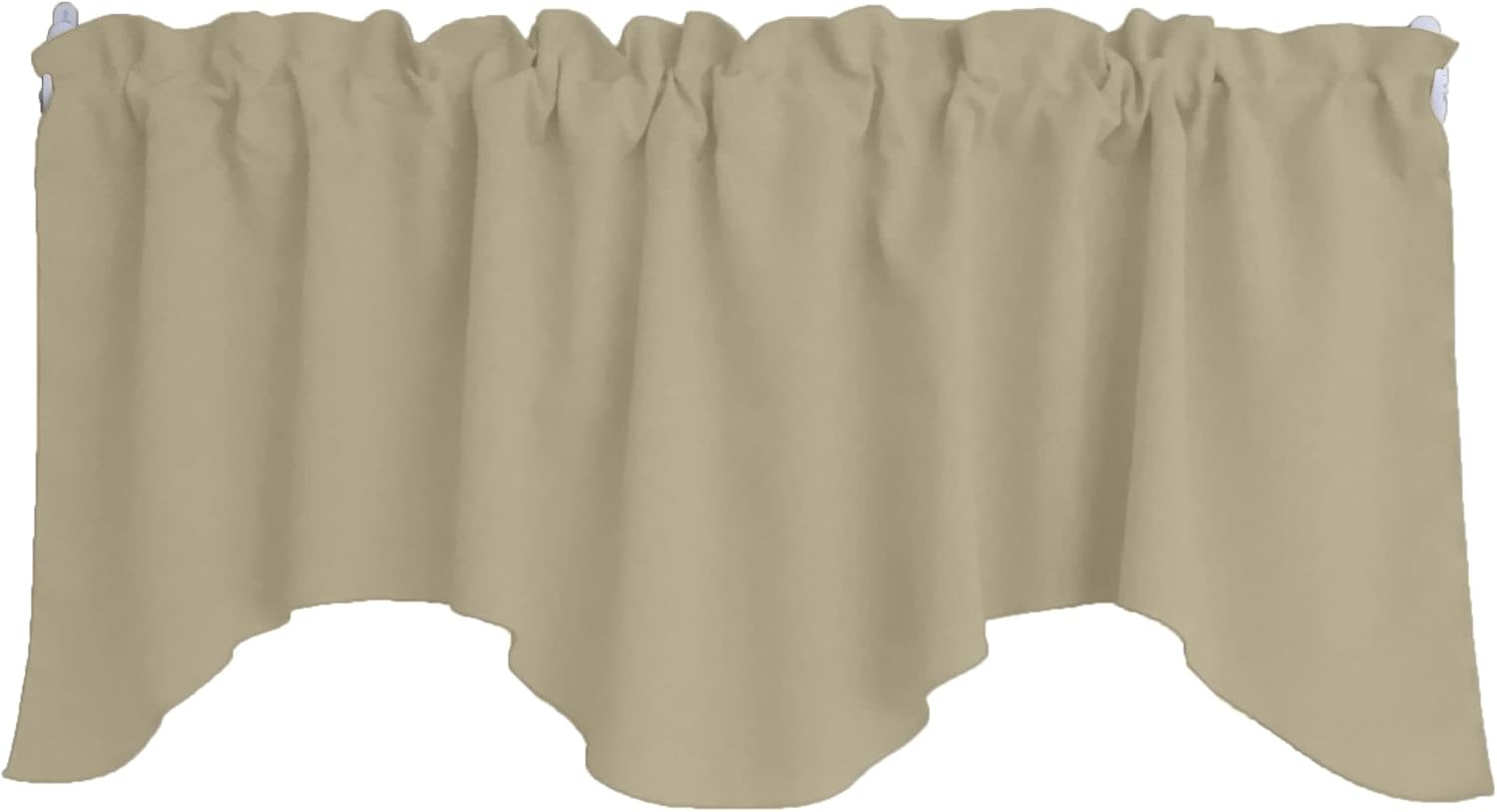 Scalloped valance set made from a Durable solid poplin polyester fabric. This includes a valance with the measurements of 72" wide and 36" tall swag ends, the middle is 18" tall from the top edge. One inch header above a two inch pocket at the top of the valance. The colors of products when viewed on your computer monitor may appear different than the actual color of the merchandise. We make every attempt to give you a good representation of the available colors for each product sold, but unfortunately we cannot guarantee an exact match. Please contact us for swatch samples or custom size requests.