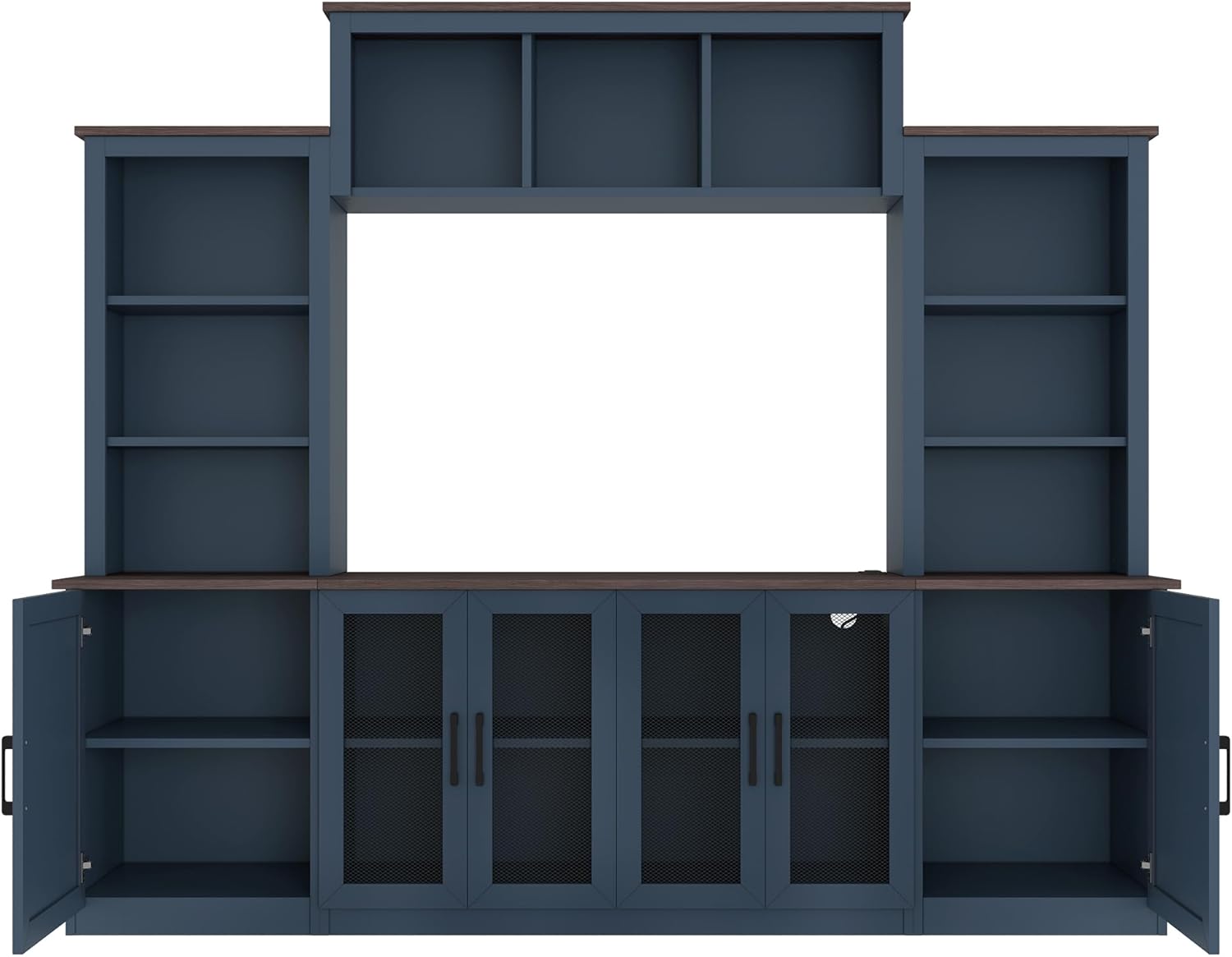 LUMISOL focuses on providing you with high-quality furniture and is committed to bringing happiness to every buyer's life. This all-in-one entertainment center seamlessly integrates display cabinet, bookshelves, TV stand, and storage units into one product to meet your various needs.TV Stand: 87.6''L x 14.6''W x 72.8''H Table Top Weight Capacity: 154LBS Each Shelf Weight Capacity: 44LBS Overall Product Weight: 194.45LBS Top Material: MDF Board Handle Material: Metal Number of Drawers: 0 Level of Assembly: Full Assembly Needed Suggested Number of People: 3 Additional Tools Required: Screwdriver Required Number of Package: 2 Country of Origin: China Notice: All colors on our website are for reference only, actual product colors may vary a little bit, due to different color settings of every screen device. Please note: most of our furniture is hand-measured, therefore the dimensions are for reference only, and may marginally deviate.
