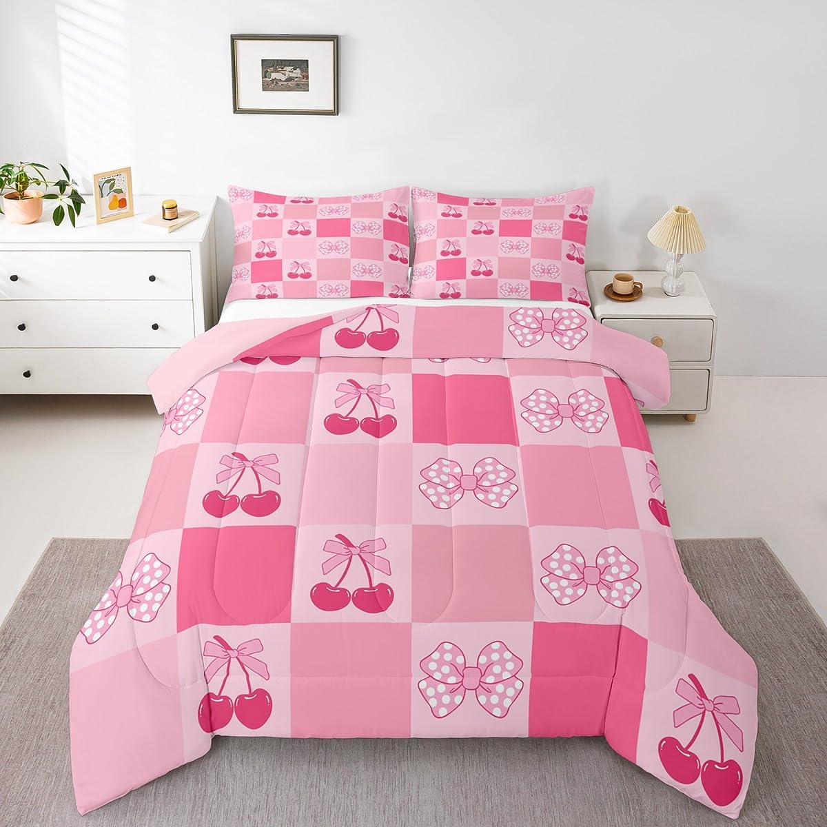 Package Include: Comforter and Pillowcase. Makeover your bedrooms every season with our Comforter sets! Perfect item for your room, girls boys youth room, master bedroom. Size Information: Twin size down comforter (68" W x 90" L) & 1 quilted pillow case (30" W x 20" L). 2pcs with 1 Bed Comforter and 1 Pillowcases in One Bag Full size down comforter (79" W x 90" L) & 2 quilted pillow cases (30" W x 20" L). 3pcs with 1 Bed Comforter and 2 Pillowcases in One Bag Queen size down comforter (90" W x 90" L) & 2 quilted pillow cases (30" W x 20" L). 3pcs with 1 Bed Comforter and 2 Pillowcases in One Bag King size down comforter (104" W x 90" L) & 2 quilted pillow cases (36" W x 20" L). 3pcs with 1 Bed Comforter and 2 Pillowcases in One Bag Useful and practical A luxurious product for homes, dorm rooms, hotels, guest rooms.Practical to use for being polyester, feels like cotton which is Super Soft & Breathable. No chemicals used, No dye substance harming the health of you or your family. Unique design: Vivid Colors won't fade thanks to new 3D digital printing methods.These unique designs match well with various color palettes of your rugs, curtains, headboard, furniture, and all other decor accessories. Personalized: As manufacturers of digital printed home textiles, we follow current trends and bring you the latest home fashion. More Decor: Search "Manfei" to get more christmas theme/new year theme/autumn fall theme/any holiday theme/modern abstract/farmhouse rustic theme/simple pattern/garden flowers etc. home decoration Note: The Comforter & Pillow Shams are printed on the Front Side Only, the back of them are white colored.