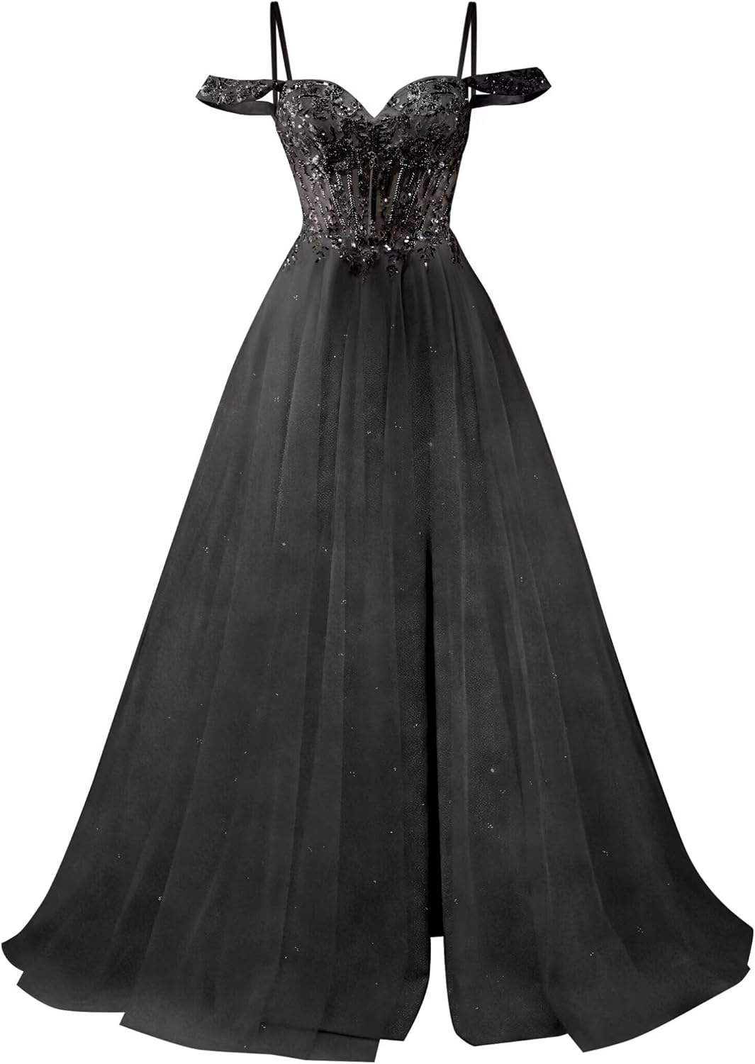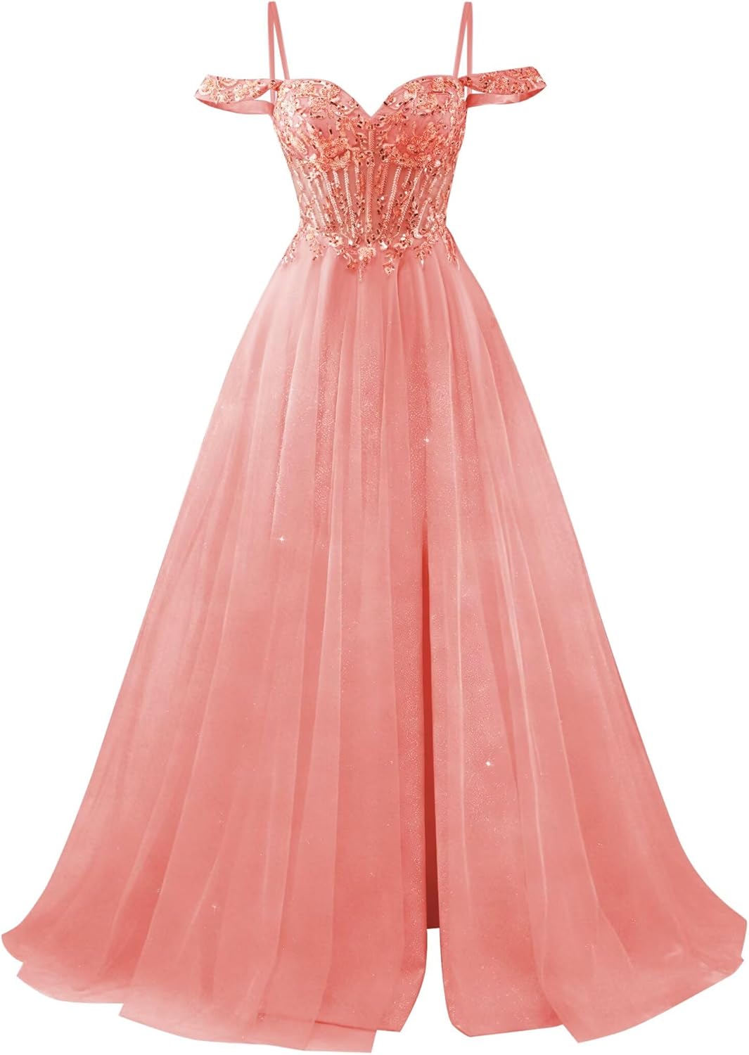 Welcome to WWOM Off Shoulder Tulle Prom Dresses with Slit Beaded A Line Plus Size Ball Gowns Sparkly Formal Evening Gown Fabric:Tulle & Lace Beaded Silhouette:A Line Customized Size: We support custom dresses, please contact us and send the following size A.Full Bust _____ inch or ___ cm. B.Waist _____ inch or ___ cm. C.Hips _____ inch or ___ cm. D.Height: _____inch or ___ cm. E.Hollow (collarbone)to floor____ inch or ___ cm. F.Shoulder to Shoulder ____ inch or ___ cm. G.The heel of your shoes: _____inch or ___ cm. H.The date you need the dress____. OTHER NOTES: 1.The real color of the item may be slightly different from the pictures shown on website caused by many factors such as brightness of your monitor and light brightness. 2.Please allow slight deviation for the measurement data.
