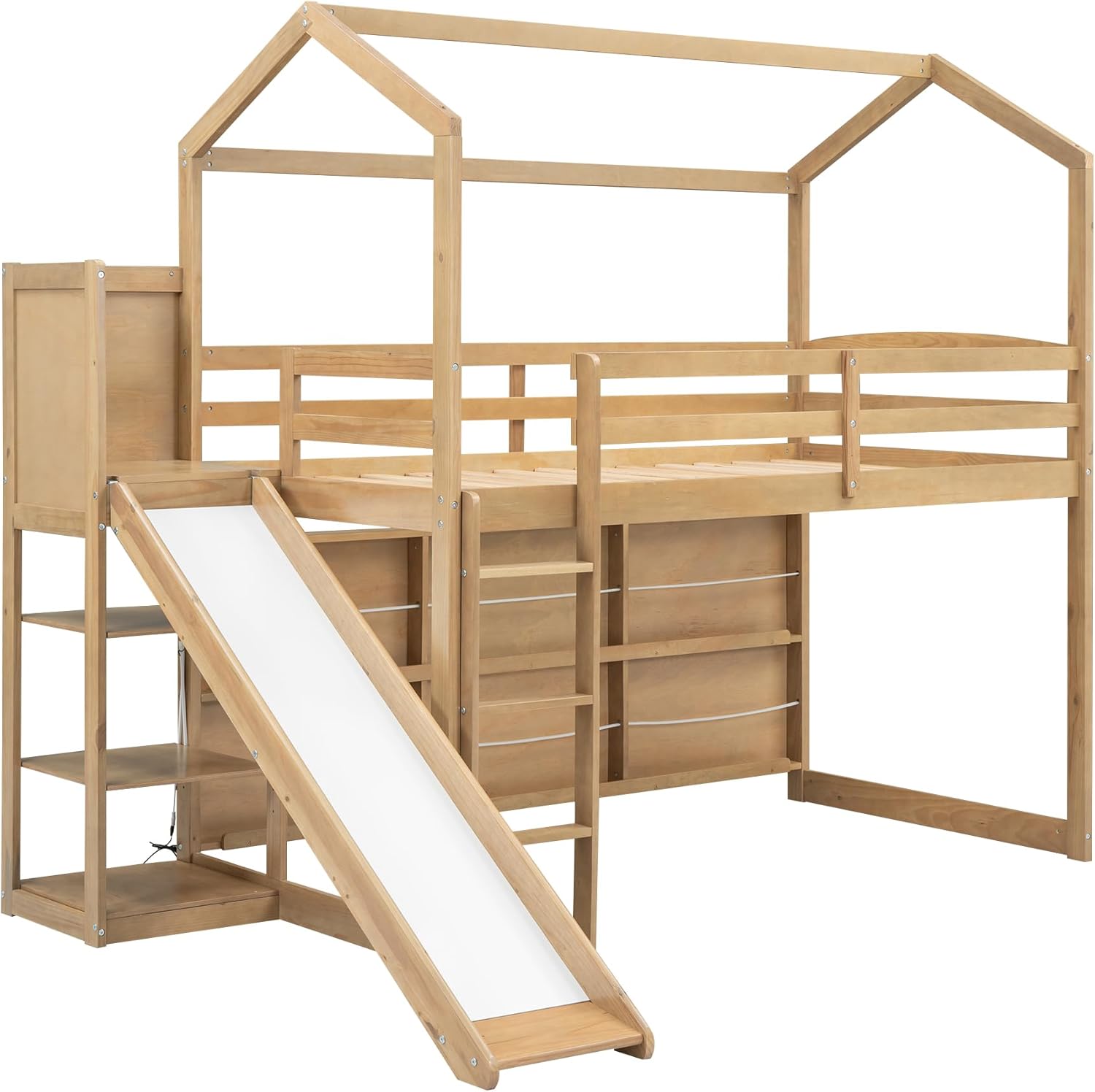Overall Product Dimension: 93.1"L x 86"W x 48.8"HNumber of Package: 2Overall Product Weight: 215 LBSWeight Capacity: Upper bed-175LBS, Bottom bed-300LBSNumber of Slats: Upper bed-14, Bottom bed-7Recommended Mattress Thickness: Upper bed-6", Bottom bed-8"Recommended age: >6 years oldSpecifications: Product Type: Bunk BedProduct material: Plywood+MDF+PinewoodBed slat material: PinewoodLevel of Assembly: Partial assemblyStairs/drawers be installed on both sides: YesTotal product weight: 189lbsBox Spring Required: NoMattress Included: NoEstimated Time to Assemble: 1 hourSuggested Number of People: 2Additional Tools Required: All Tools Included/ScrewdriverAvoid power tools: YesNotes: Manual measurement has been used,there may be some reasonable error.All the pictures are taken by actual samples, slight chromatic aberration may occur due to lighting or display.