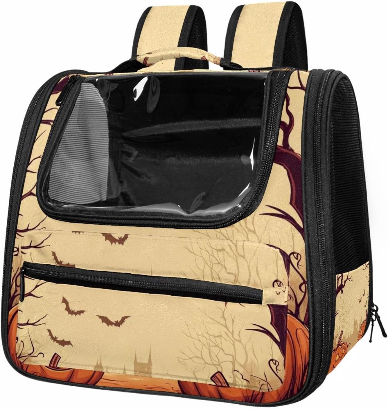 Well made: Cat Backpack Carrier is made from 900D oxford fabric, pp webbing, velvet, nylon, which is very sturdy, environmentally friendly and breathable. Not easily scratched by pet’s claws, pet backpack carrier is SAFETY & ANTI-SCRATCH. The back padding will give you a comfortable and breathable experience. Ventilated Backpack: With a breathable window in the front, this pet backpack allows cats to enjoy the sun without feeling stuffy. There are two side pockets and one big front pocket, and you can take foods or toy for your kitten pet. It is big enough for cat to turn around, and there are side pockets and hook holes, you will enjoy the greatest convenience when taking your cat out. Perfect size: Cat carrier is 15.75x9.84x13.78in/40x25x35cm. Fits most small/medium sized cat, dog, and pet. Quality fleece bed provide a comfortable place for your pet. Lightweight and easy to carry to all places. Built-in harnesses keep your naughty friends from escaping. Removable cosy mat for easier cleaning and let your pet enjoy it inside. Easy to carry: The adjustable shoulder strap of pet carrier bag help you hands-free carrying and makes it the most safe and convenient pet carrier bag for your travel. Seat belt design provide pets with safety protection throughout the trip. Pad protection keep your pets comfortable during travel. Unique Design: Innovative inside graphic design gives you a stereoscopic 3D visual experience. You also send us the photos you interest to make your unique dog or cat carrier. Pet bag is also a amazing gift for pet lover.