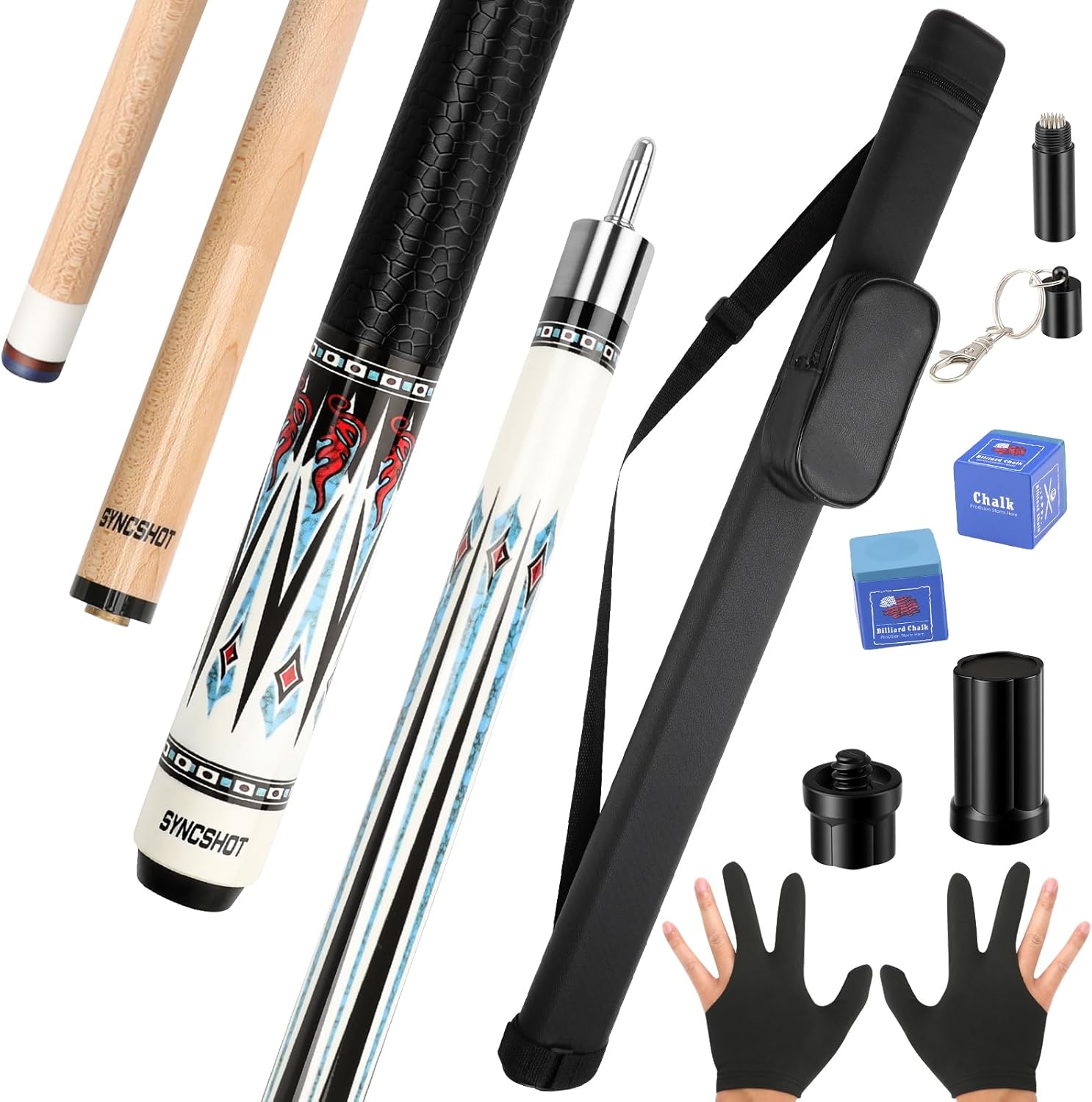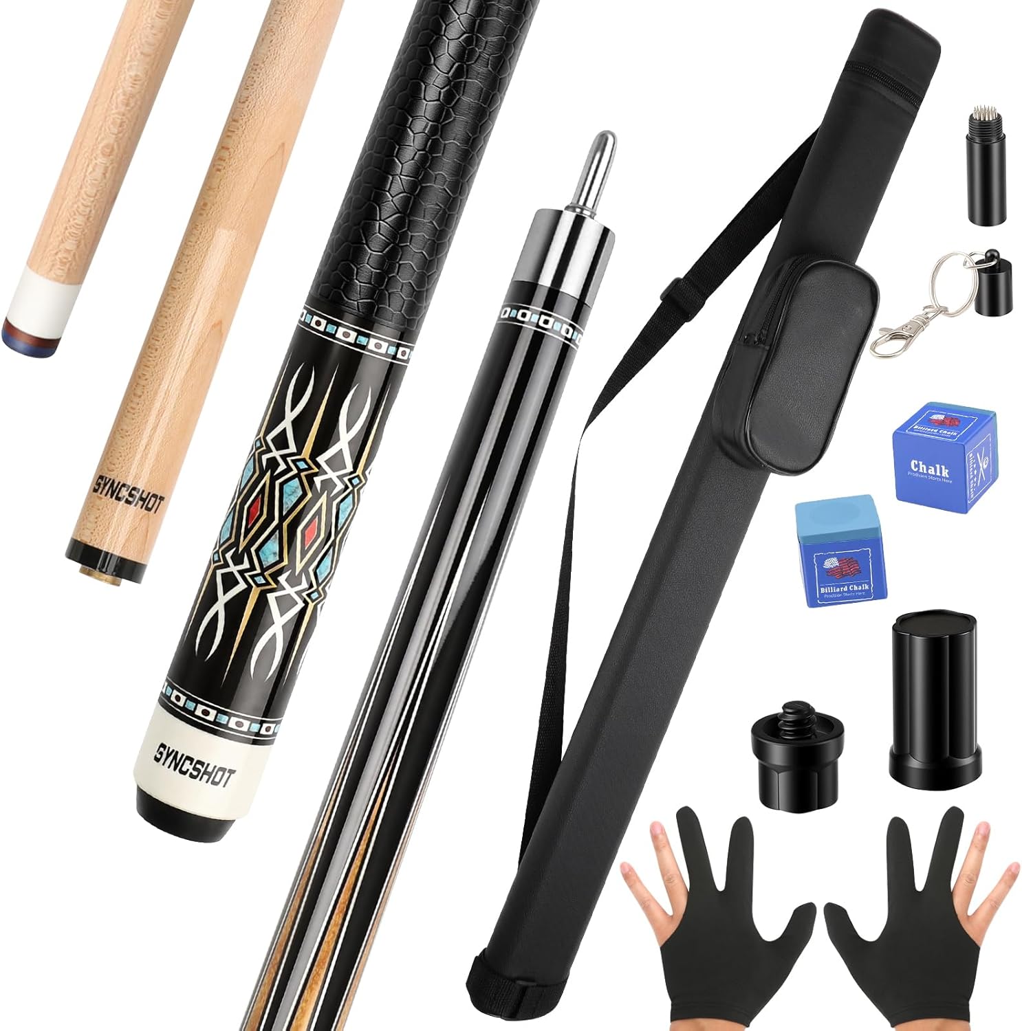 | Included Components | 1 BUTT AND 1 SHAFT,1 EXQUISITE LEATHER CASE,1 GLOVE,1 CUE TIP PICK,2 JOINT PROTECTORS |