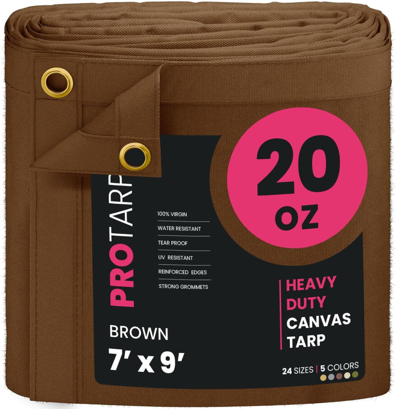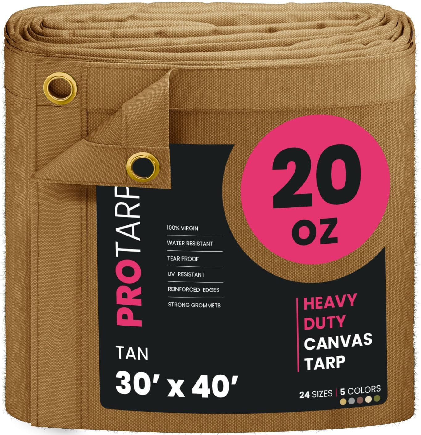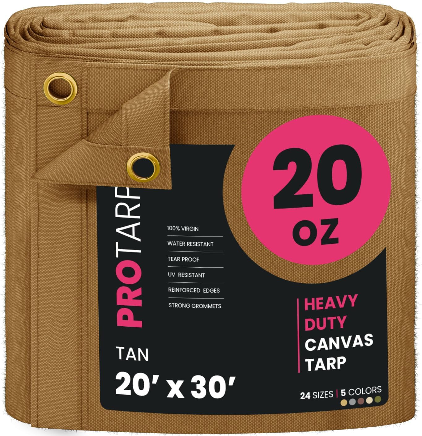 PROTARP Extreme Heavy Duty 20 OZ Water Resistant Canvas Tarp, UV Resistant Tarpaulin Cover with Rustproof Brass Grommets, Multipurpose for Canopy, Roof, Camping, Woodpile . (Tan 8'X10')