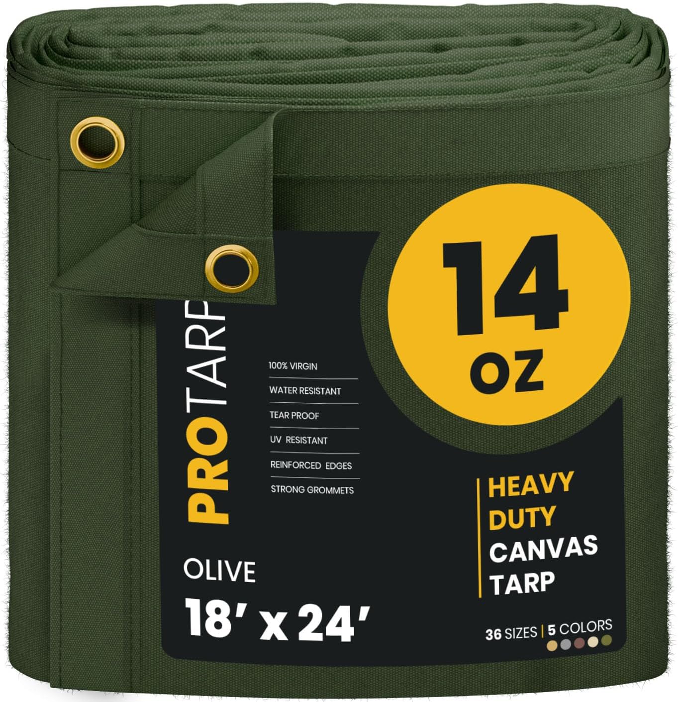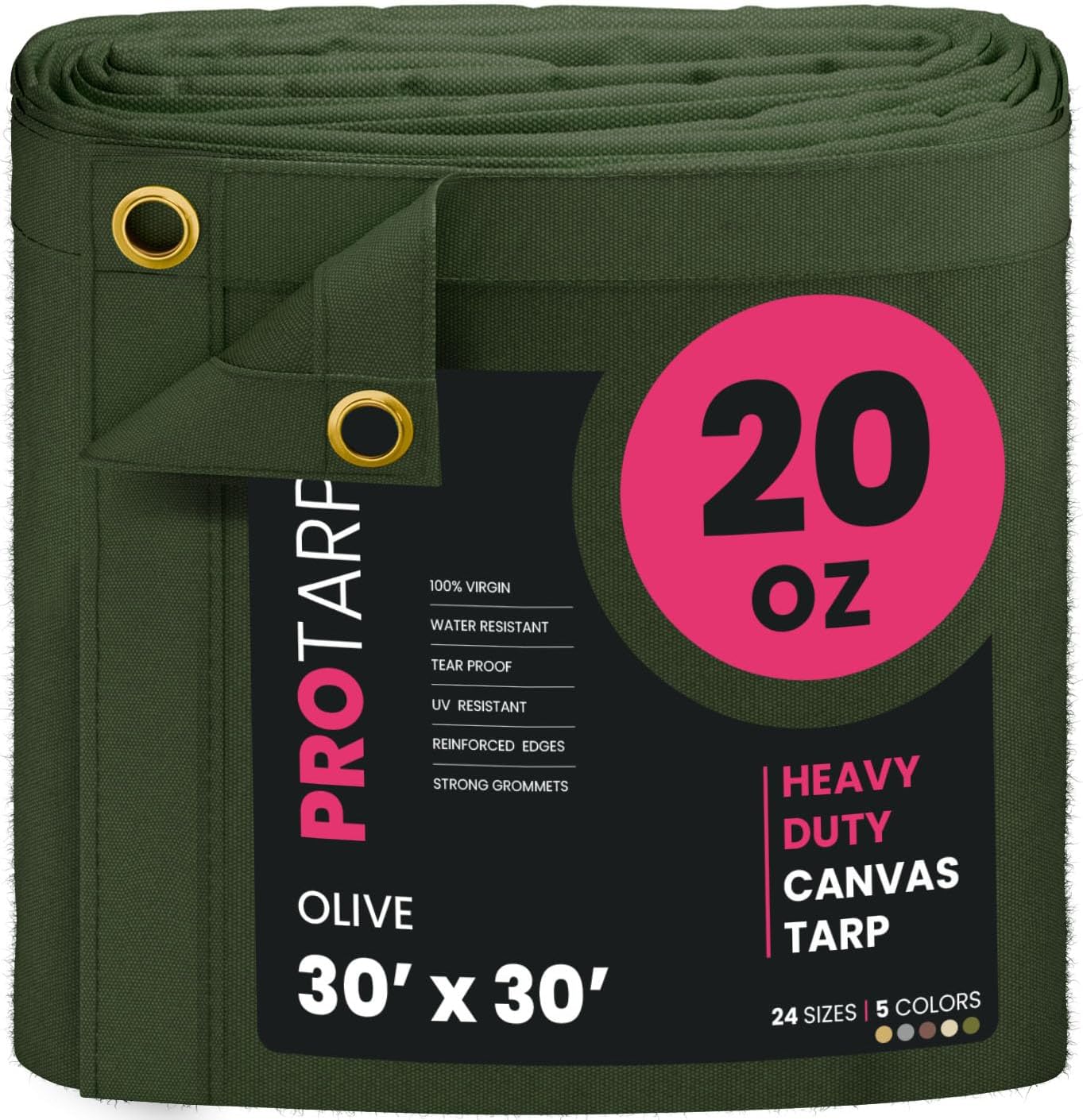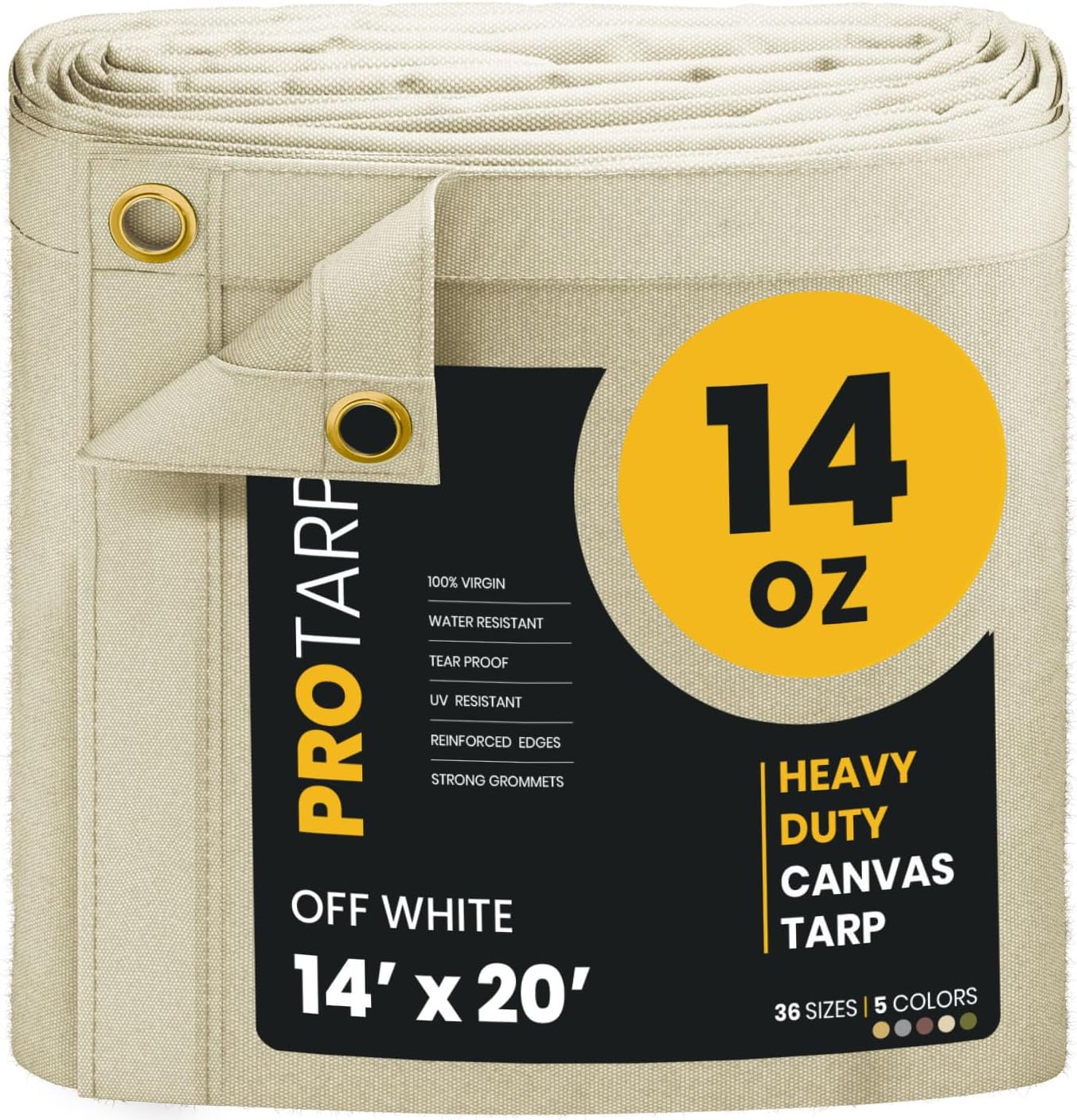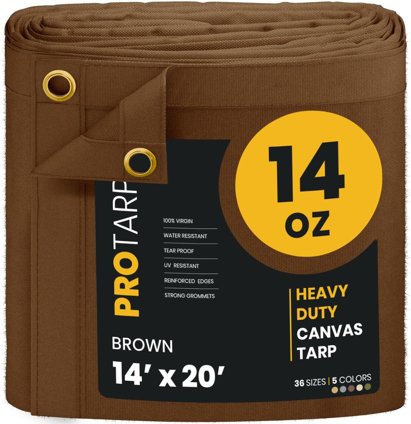 PROTARP Extreme Heavy Duty 20 OZ Water Resistant Canvas Tarp, UV Resistant Tarpaulin Cover with Rustproof Brass Grommets, Multipurpose for Canopy, Roof, Camping, Woodpile . (Tan 8'X10')