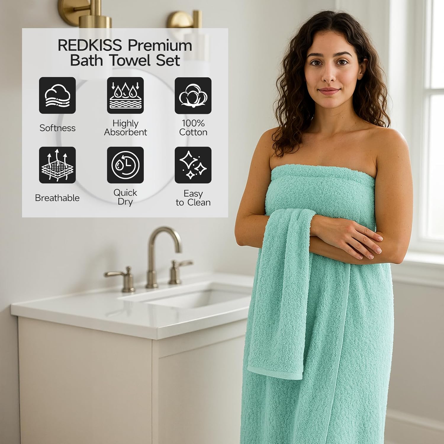 Refresh your daily routine with the REDKISS 4-Piece Bath Towel Set, designed for maximum softness, absorbency, and durability. Made from 100% premium cotton, each towel delivers spa-like comfort and superior moisture-wicking, leaving you dry and refreshed after every shower, workout, or pool session. This set includes four oversized bath towels, perfect for families, guests, or anyone who loves having extra towels on hand. With a high-density weave and reinforced double-stitched hems, the towels resist fraying and maintain their plush texture wash after wash. Hypoallergenic and gentle on all skin types, these towels are ideal for daily use. Compact folding makes storage simple, and REDKISS’s commitment to eco-friendly dyes and ethical production ensures a product you can feel good about using every day.