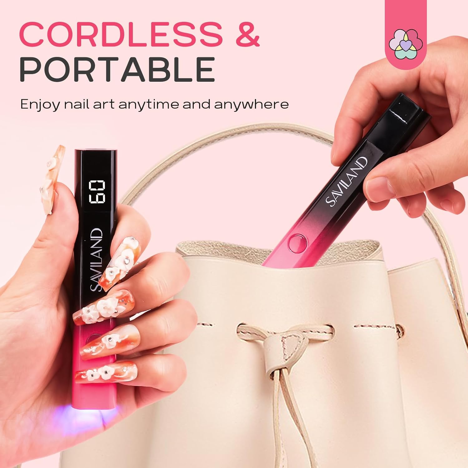 Saviland Monomer Acrylic Nail Liquid – 8.11fl.oz Acrylic Liquid with 3PCS Acrylic Brushes Size SAVILAND Handheld U V Light for Nails: 12W Purple Mini UV Light for Gel Nail 3 Timer Setting LED Nail Lam