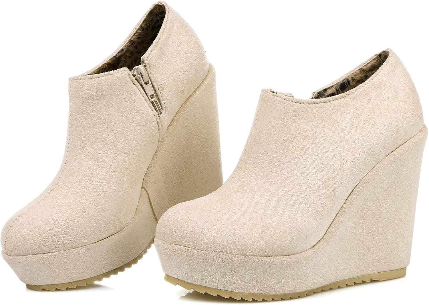 SHEMEE Women's Wedge Booties Platform Heels Ankle Boots High Heeled Platform Pumps Round Toe Zip Up Short Booties Office Party Dress ShoesSize Chart:size US 4 = EU34 = Heel to Toe 21.6cm / 8.5"size US 5 = EU 35 = Heel to Toe 22.3 cm / 8.8"size US 6 = EU 36 = Heel to Toe 22.9 cm / 9.1"size US 6.5 = EU 36.5 = Heel to Toe 23.3 cm / 9.2"size US 7 = EU 37 = Heel to Toe 23.6 cm / 9.3"size US 7.5 = EU 37.5 = Heel to Toe 23.9 cm / 9.4"size US 8 = EU 38 = Heel to Toe 24.3 cm / 9.6"size US 8.5 = EU 38.5 = Heel to Toe 24.6 cm / 9.7"size US 9 = EU 39 = Heel to Toe 24.9cm / 9.8"size US 9.5 = EU 40 = Heel to Toe 25.6cm / 10.1"size US 10 = EU 41 = Heel to Toe 26.3 cm / 10.4"(If your feet are wide of thick,please choose one size bigger)Item Features:Material: Synthetic vamp; Non-slip rubber sole; Soft synthetic lining for all-day comfort.Heel Type: Wedge heel,platform high heeledHeel height: Heel height: 4.72"/12cm; Platform height: 1.18"/3cmClosure Type: Zip-UpToe Type: Round toeGender: Women/Lady/GirlSeason: Spring/Summer/Fall/WinterOccasion Lifestyle: Fashion,Classic,CasualPerfect stable platform wedge heels design that can keep comfort all days. Fashion round closed toe women pumps stylish comfort bridal wedding dress shoes which highlights your cute,elegant,confidence,beauty and sophisticated look.SHEMEE specializing providing our customers with the latest women fashion shoes,including high heels,wedges,boots,oxfords,mary janes,pumps,flats,sandals and slippers.