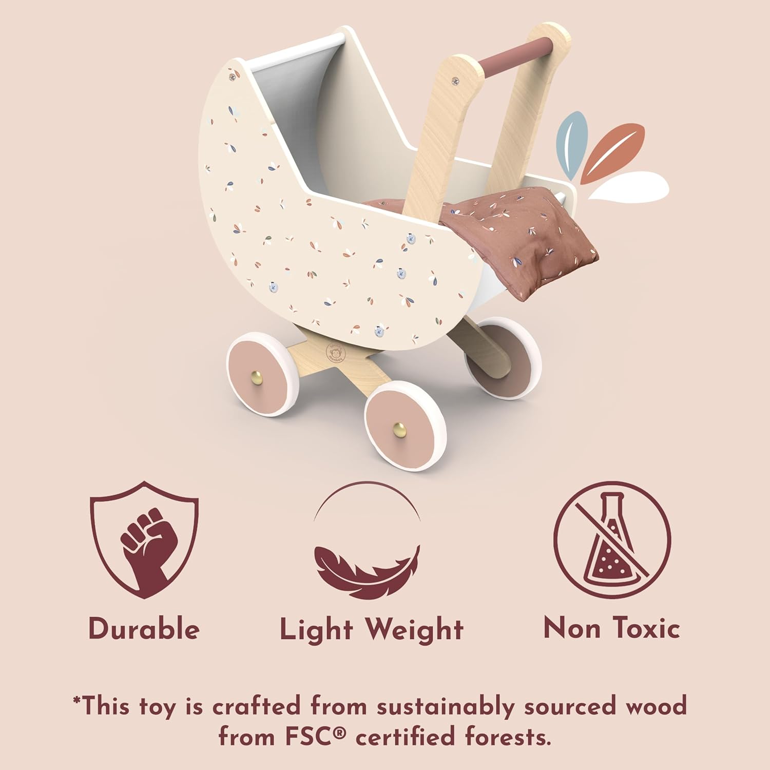 | Included Components | Bedding, Bib, Diaper Pad, Feeding Accessories, Rabbit Baby Dolls, Wooden Doll Pram |
