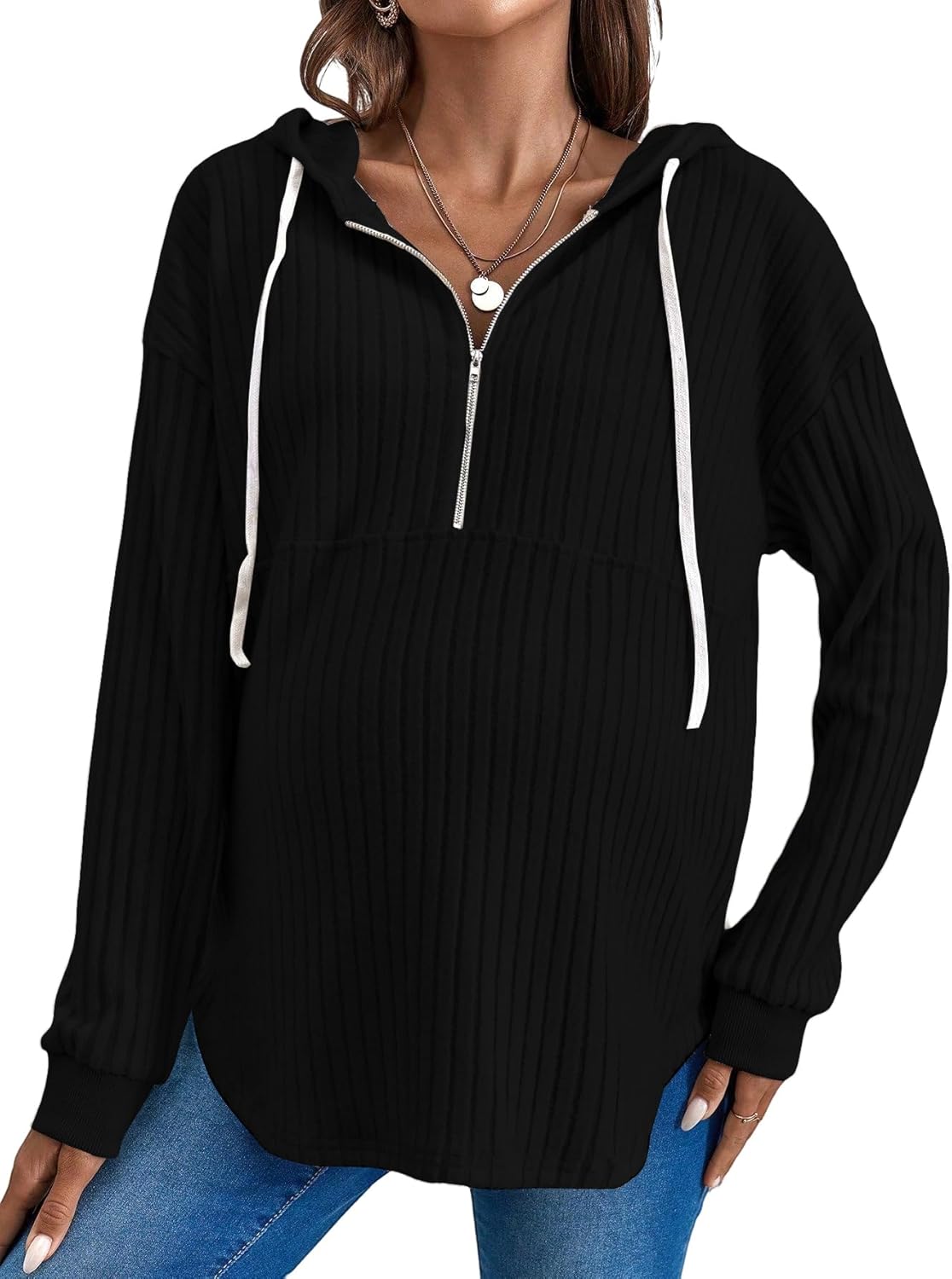 Women's Maternity Sweatshirts Long Sleeve Rib Knit Half Zip Up Hoodies Pullover Tops Fall Clothes