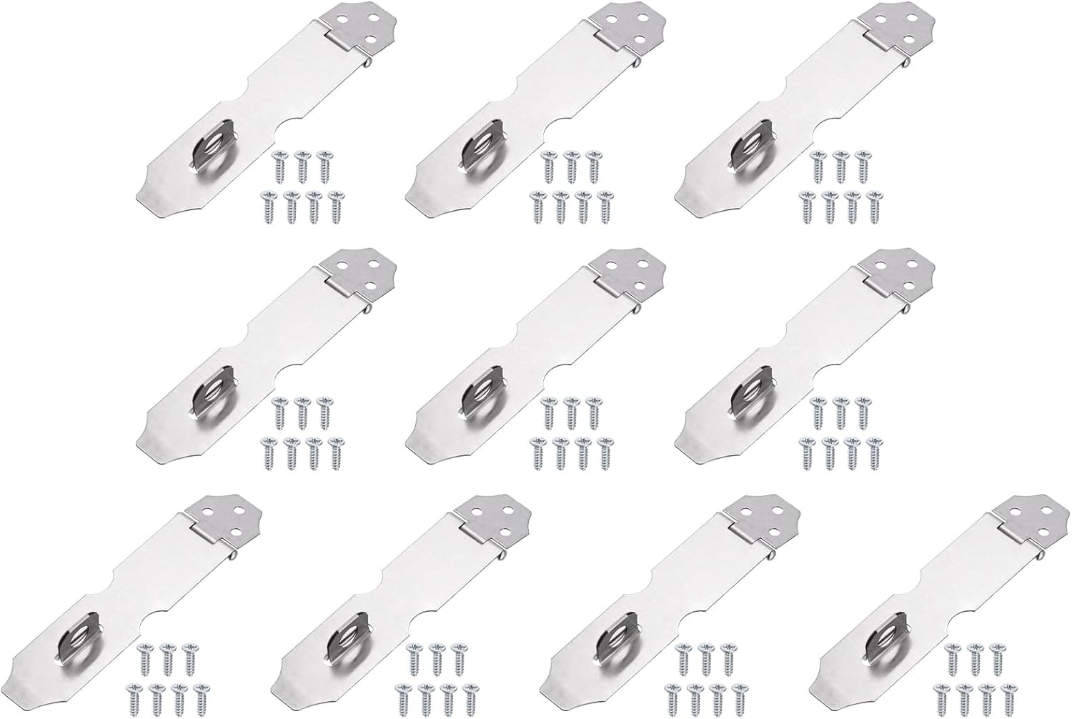 Reasons for Selection - The padlock latch is crafted from premium stainless steel with a polished, burr-free finish, offering resistance to corrosion, rust, and deformation. The solid, thickened connecting rod ensures smooth, reliable rotation without jamming.It features a reinforced body with countersunk and symmetrical screw holes for superior load-bearing capacity. Measurement - Color: Silver; Material: Stainless Steel; Total Length: 150 mm / 5.91 inch; Size: 124 x 34 x 0.6 mm / 4.88 x 1.34 x 0.02 inch(L*W*T); Hole Diameter: 4.4 mm / 0.17 inch; Keyhole Diameter: 27 mm / 1.06 inch; Packing List: 5 Pcs x Lock Hasp Latch(Include Screw)Suitable For - Lock hasp latch can lock the door securely and protect your private property. Suitable for garden doors, back doors, garage doors, pet doors, cabinets, sheds, storage boxes, boxes, door locks, shed locks, window latches, garage door locks, bathroom door locks, etc.Installation - Simply identify your desired mounting position and secure the latch firmly using the provided screws. Adjust the mounting position as required.Kind Tips - Confirm dimensions to ensure compatibility with your application.